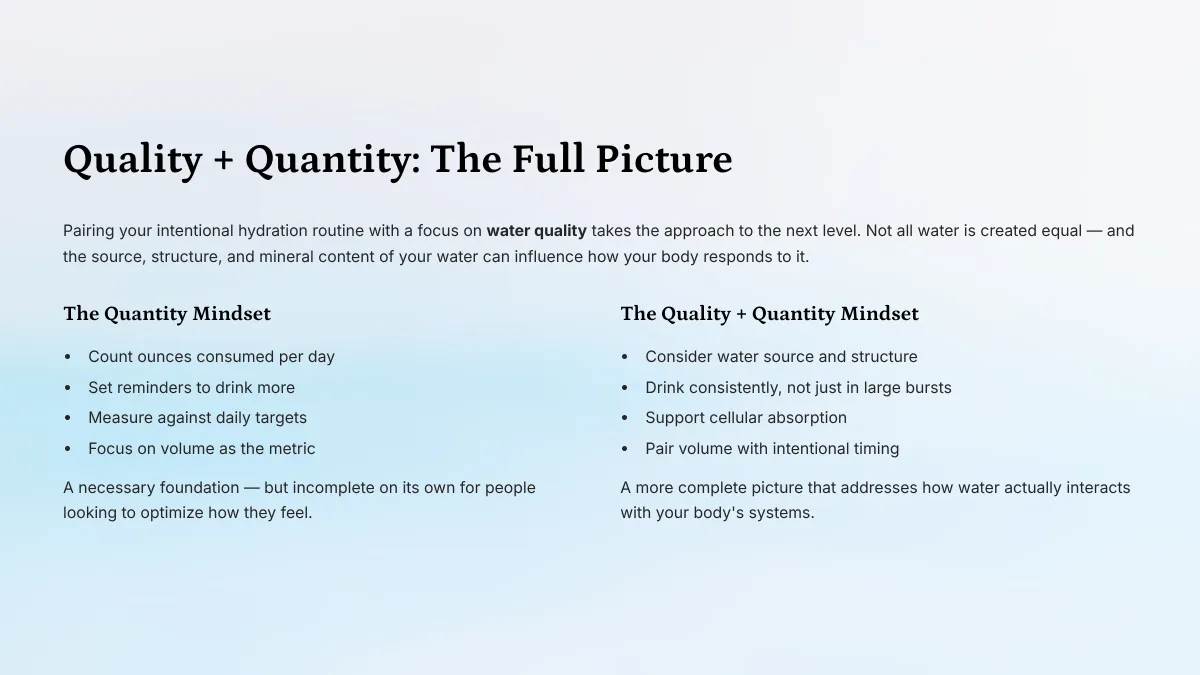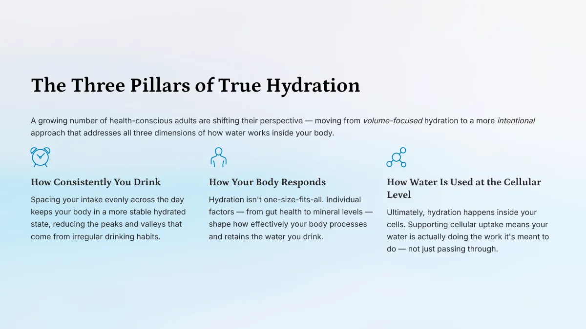 Low energy, dry mouth, headaches, afternoon crashes, and feeling like you need more support during the day can all be signs to look at hydration habits more closely.
