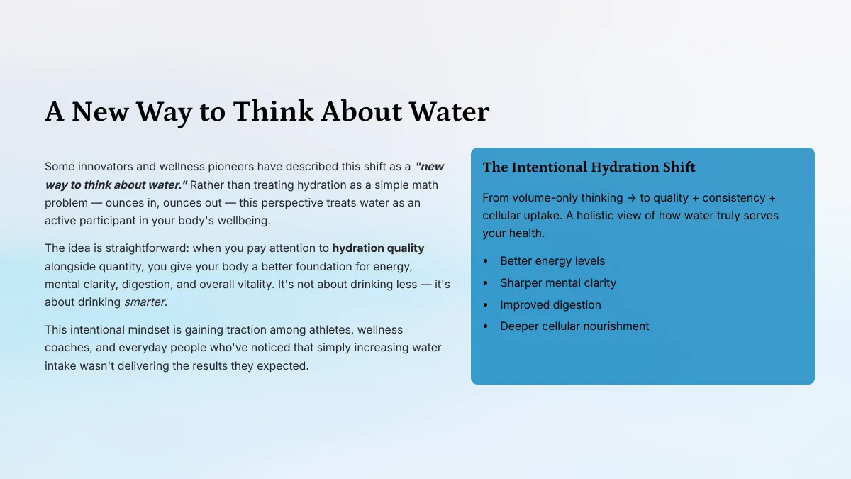 This system goes deeper—fundamentally altering how water stores, transfers, and releases energy, making it a more advanced and adaptable tool for cellular wellness..